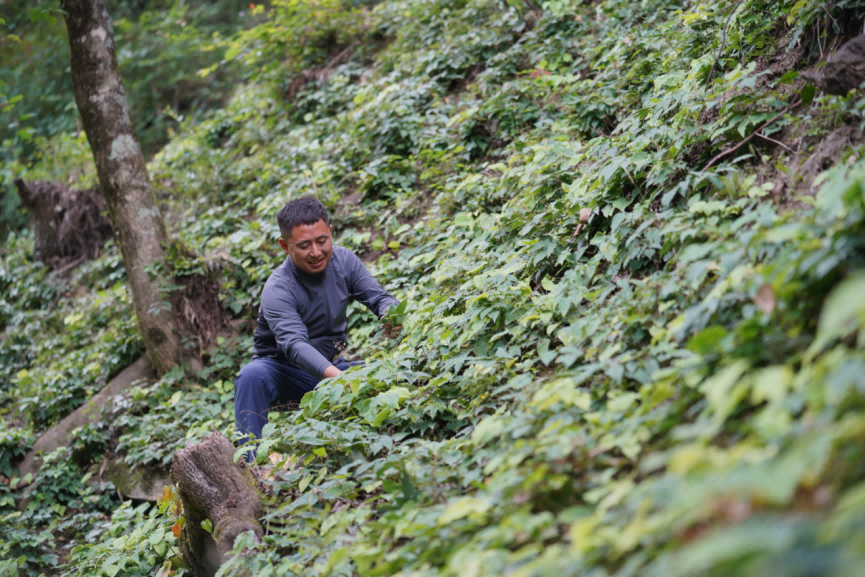 村平易近杨兴平允顶着夏季烈日断根猕猴桃树下的杂草,他边干边说:“我栽植了2亩的猕猴桃,正在树下还套种了魔芋和淫羊藿。这些年连续种植淫羊藿达到13亩,客岁又正在林里埋了一亩多的天麻和猪苓,闲余时间到林里拾些蝉蜕、挖些中药材、采些野菜,每年有两三万元的收入。”。