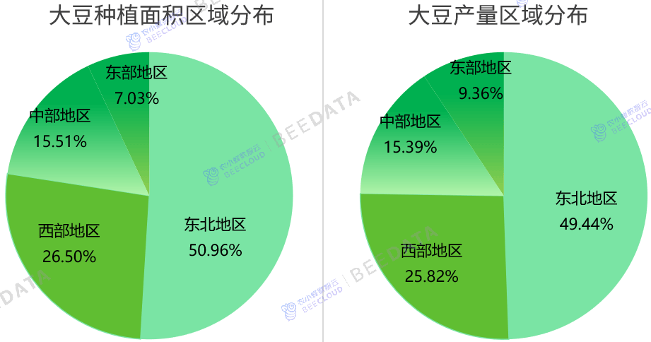 2。 从区域结构来看,当前,中国大豆产区分布款式曾经根基确定,从大豆种植面积分布来看,东北地域占比50。96%,西部地域占比26。5%,中部地域占比15。51%,东部地域占比7。03%;从大豆产量分布来看,东北地域占比49。44%,西部地域占比25。82%,中部地域占比15。39%,东部地域占比9。36%;全国70%以上的大豆出产集中正在东北及西部地域。