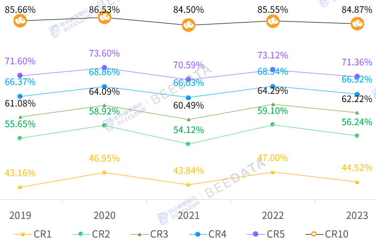 分析来看,2019~2023年,中国各省大豆产量CR5、CR10波动下降,CR1、CR2、CR3、CR4小幅添加,并且这种集中正在“”产区的态势有更进一步集中的趋向。