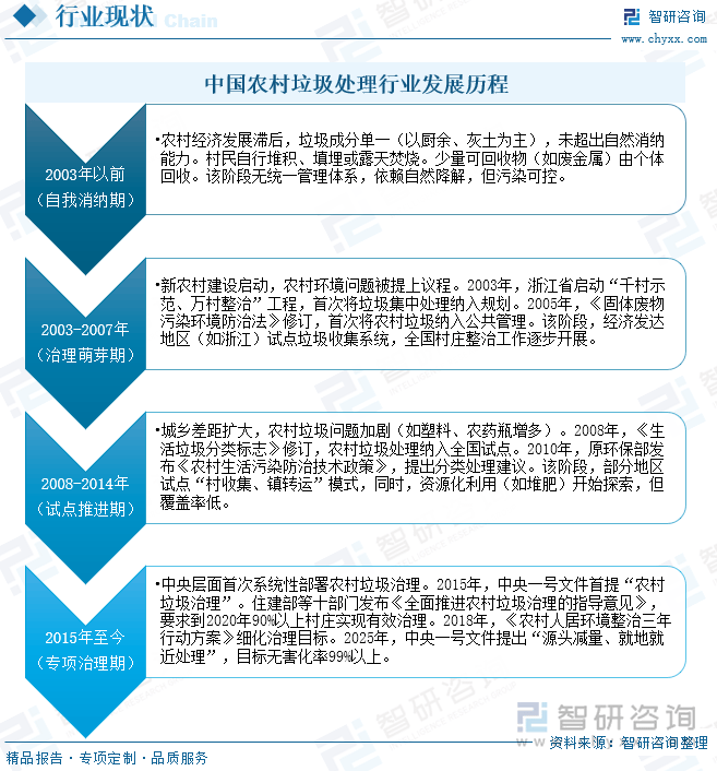 注:本文节选出自智研征询发布的《研判2025!中国农村垃圾处置行业财产链、相关政策及市场规模阐发:农村垃圾处置需求激增,政策手艺双轮驱动市场规模增加[图]》行业阐发文章,如需获取行业文章全数内容,可进入智研征询官网搜刮查看。