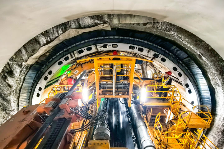 这是2025年1月5日拍摄的引江补汉工程首台双护盾硬岩掘进机“江汉安然号”掘进施工现场。记者 肖艺九 摄。